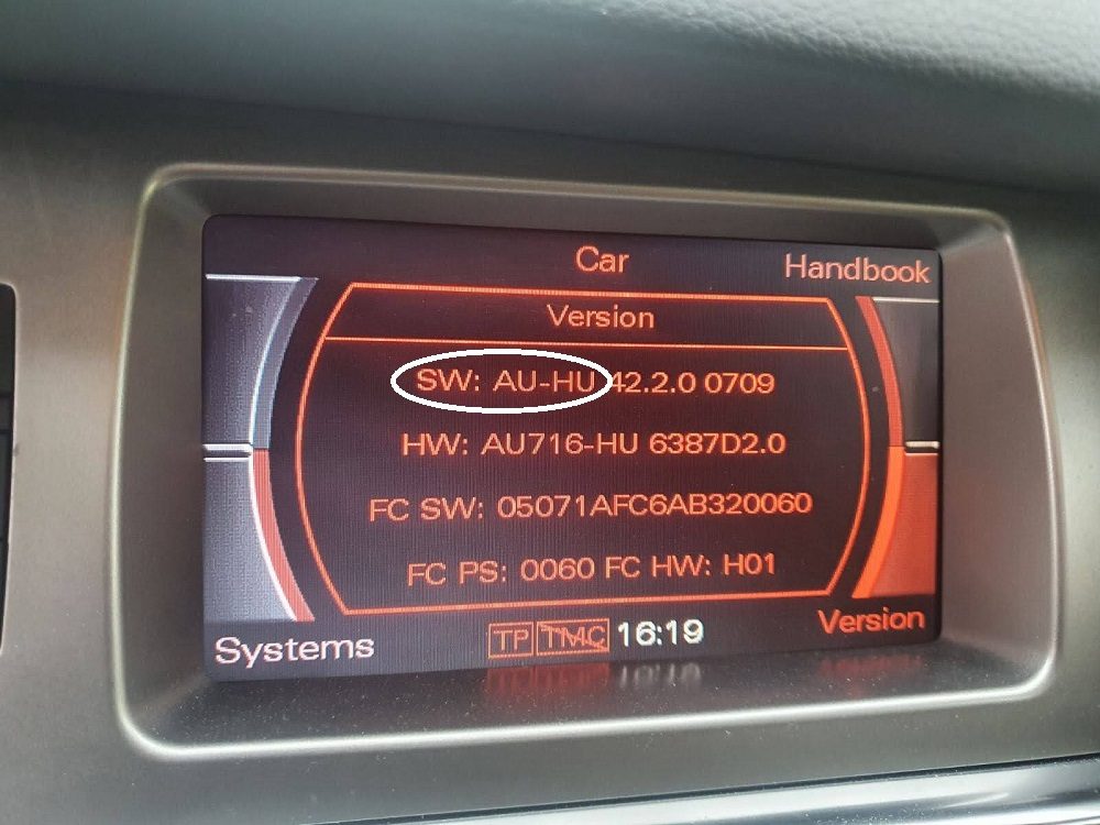 Για οχήματα με εργοστασιακό MMI 2G HIGH και το SW πρέπει να ξεκινάει με τα αρχικά όπως στη φωτογραφία παρακάτω.