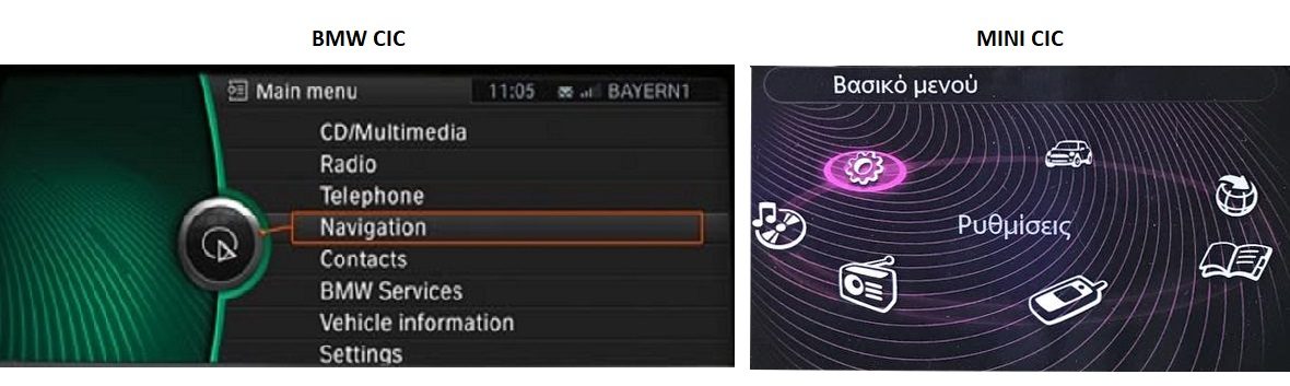 Interface για είσοδο εμπρός κάμερας και κάμερας οπισθοπορείας BMW/MINI CIC με οθόνη 6,5 / 8,8 ιντσών με μενού όπως στην παρακάτω φωτογραφία.