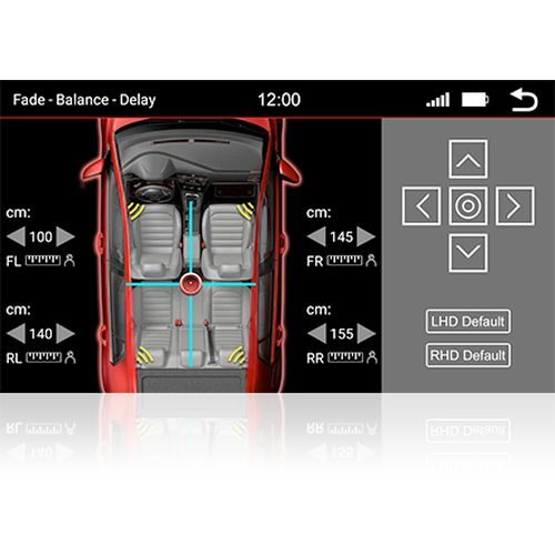 Fader and BalanceΜπορείτε απλώς να χρησιμοποιήσετε την οθόνη αφής για να σύρετε το σταυρόνημα στην επιθυμητή θέση στην εικόνα του εσωτερικού του αυτοκινήτου για να κάνετε ρυθμίσεις ισορροπίας fader και διόρθωσης χρόνου. |