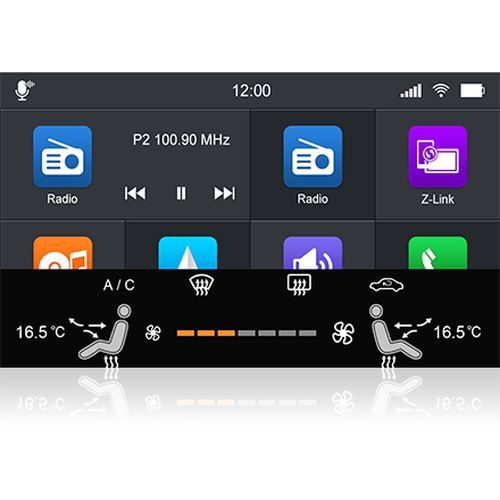 Air Condition DisplayΗ Dynavin σάς παρέχει οπτική ένδειξη για τη θερμοκρασία του οδηγού και του συνοδηγού, την κατάσταση του κλιματισμού, την κατάσταση του θερμαινόμενου καθίσματος, τους επιλεγμένους αεραγωγούς και άλλα. Αυτή η οθόνη εμφανίζεται αφού πατήσετε το κουμπί MENU στον πίνακα HVAC (Μόνο για όχημα με σύστημα κλιματισμού “Air Care Climatronic”). |