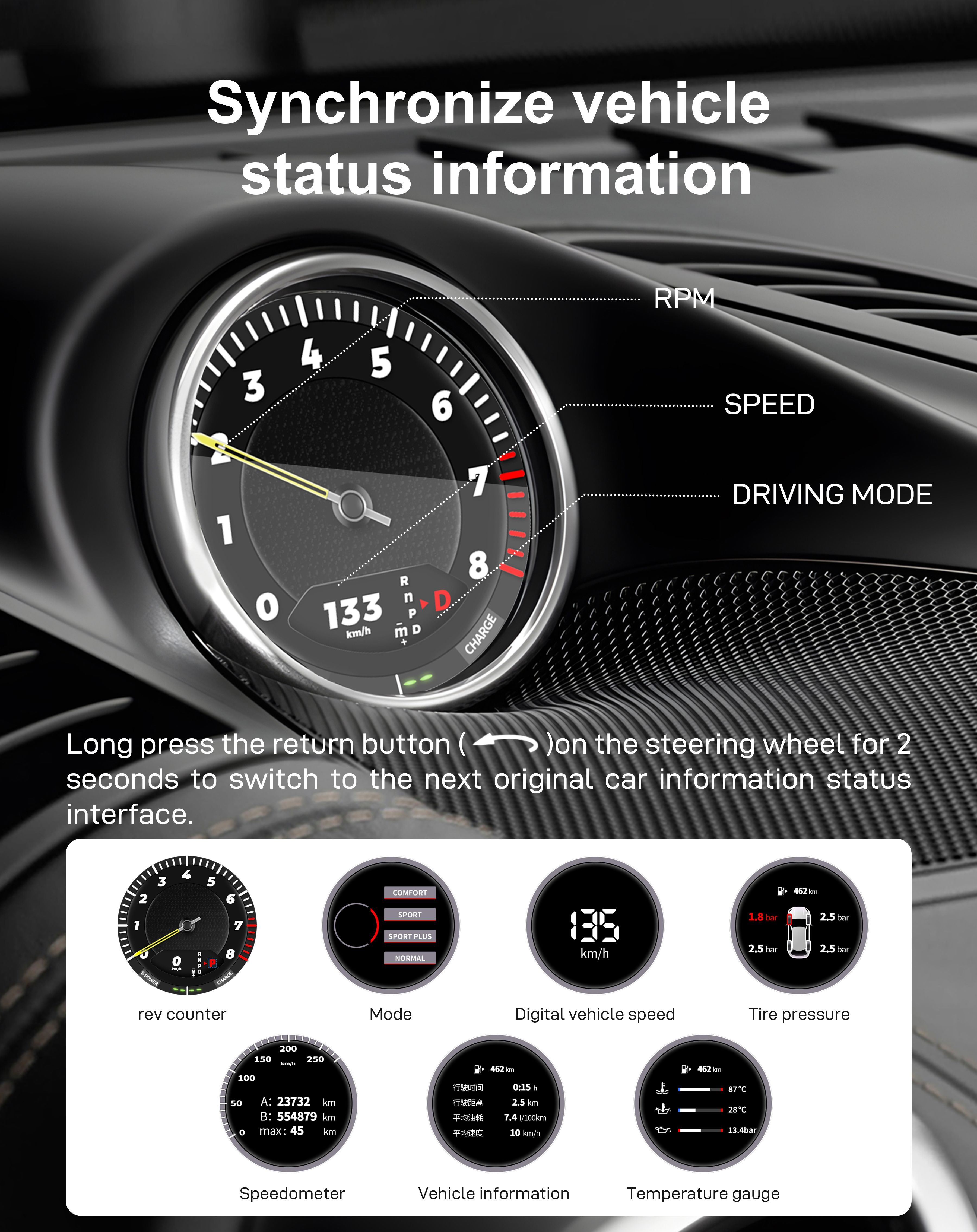 LCD Sport Chrono Stopwatch για Porsche Cayenne 2010-2017